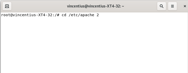 keluar dari folder html dengan perintah 'cd /' lalu pergi menuju folder apache2 dengan perintah 'cd /etc/apache2'. Tujuan kita pergi ke folder apache2 adalah untuk mengaktifkan web kita kedalam server apache2.